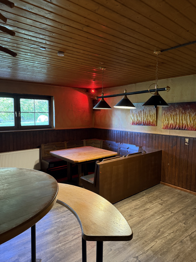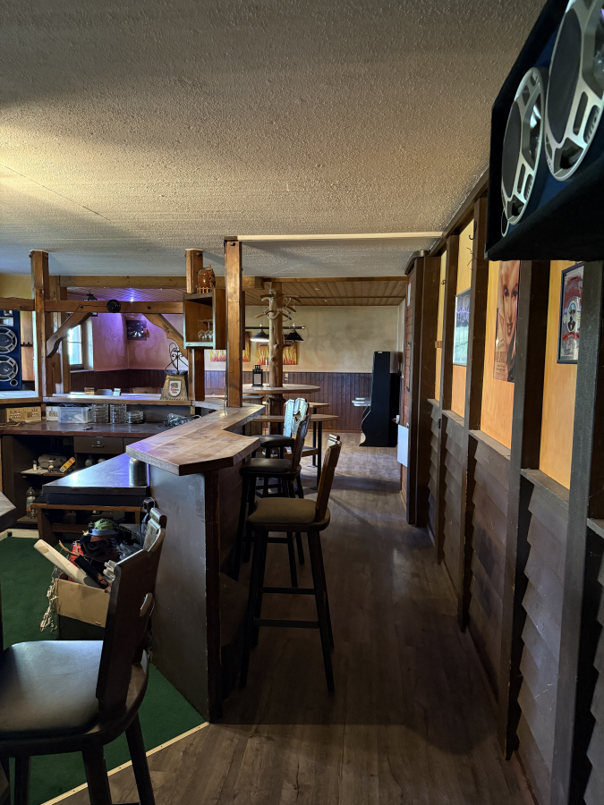 Die Bar wird inklusive kompletter Einrichtung verkauft – von der Theke über Sitzmöbel bis hin zu diversen Ausstattungsgegenständen. Sie befindet sich in einem renovierungsbedürftigen Zustand und bietet dadurch viel kreativen Spielraum zur individuellen Neugestaltung.